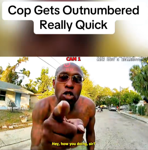 A tense and chaotic moment exploded on a quiet neighborhood street after a lone police officer approached a man during…