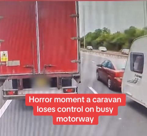 A shocking motorway incident has left viewers stunned after dash-cam footage captured the heart-stopping moment a caravan suddenly lost control…